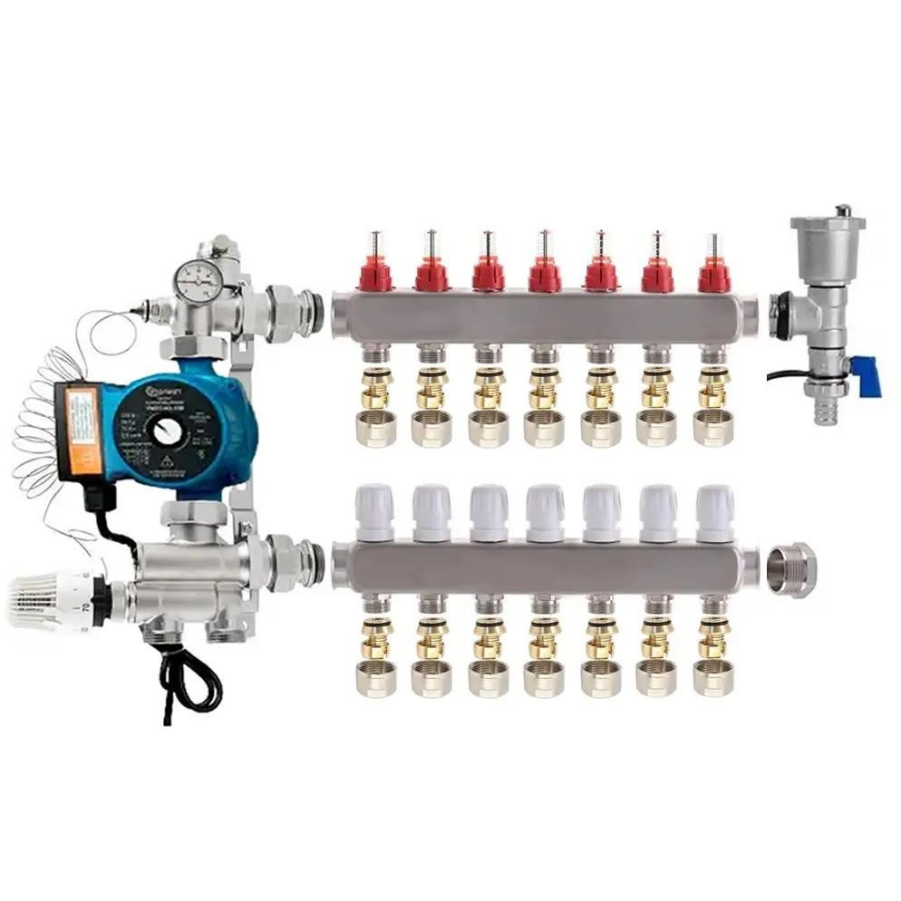 Колектор для теплої підлоги у зборі з нижнім під'єднанням на 7 контурів з насосом (ПОЛЬША)